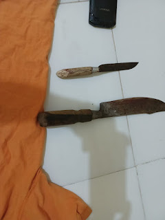 (satu) helai baju kaos warna orange milik pelaku, 2( Dua) bilah senjata tajam jenis Pisau bergagang kayu, 2( Dua) unit HP Android merk Realme warna hitam dan Advan warna hitam ( milik pelaku & korban ) ." Pungkasnya. (humas)